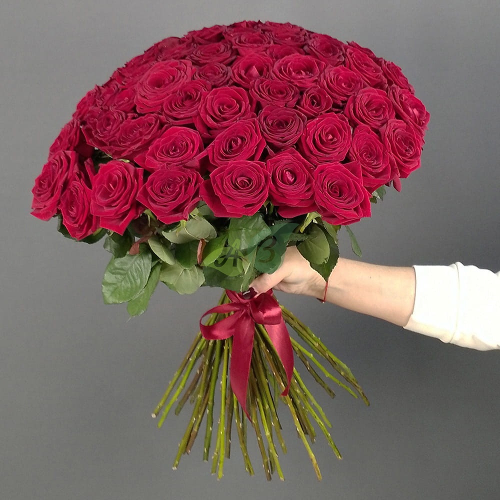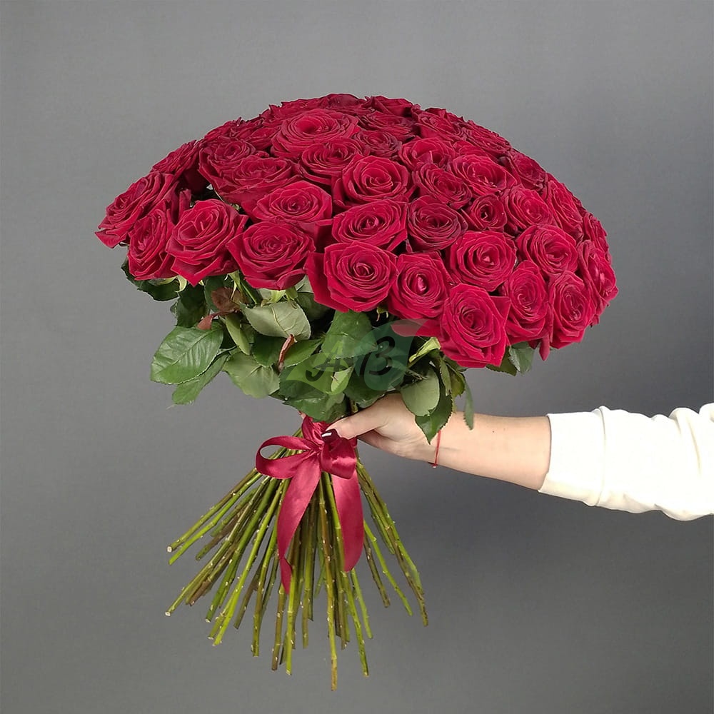- Роза - 51 штука, цвет - красный, длина стебля - 60 см;