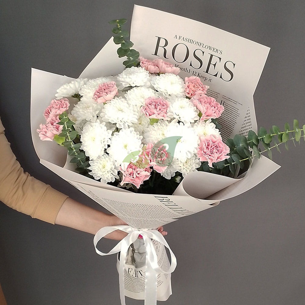 Сборный букет будет стоять долго. У нас вы заказываете букеты только из свежих цветов. То есть, мы достаем их из специальных упаковок только перед работой над композицией. Они не пылятся на витринах и не “пьют” воду с подкормкой.