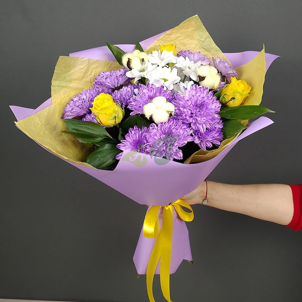 - Хризантема кустовая - 3 штуки, цвет - сиреневый;