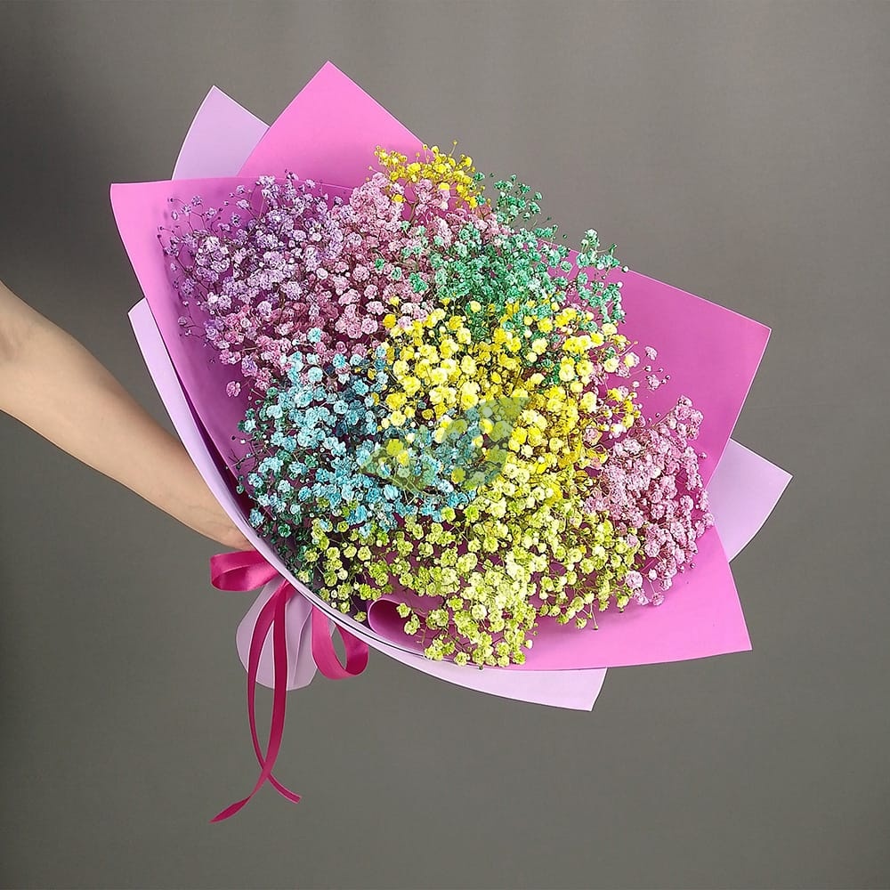Состав и характеристики букета разноцветная гипсофила: