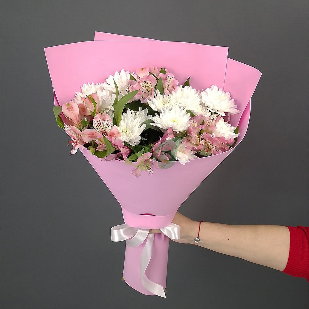 Состав и характеристики букета альстромерий и хризантем "Жаворонок":